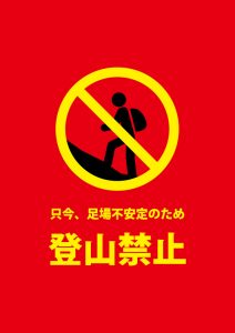 テンプレート内文章「只今、足場不安定のため 登山禁止」